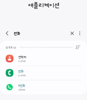3단계: 아래로 스크롤해서 'ㅈ' 부분에서 '전화' 앱을 찾아 선택합니다.