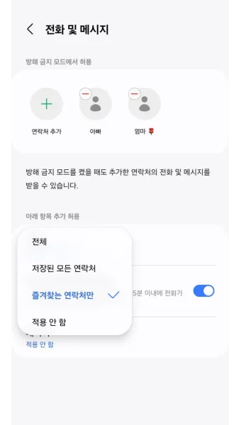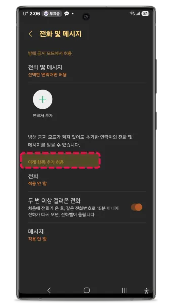 □ 방해 금지 모드 예외 설정 (중요 연락처)