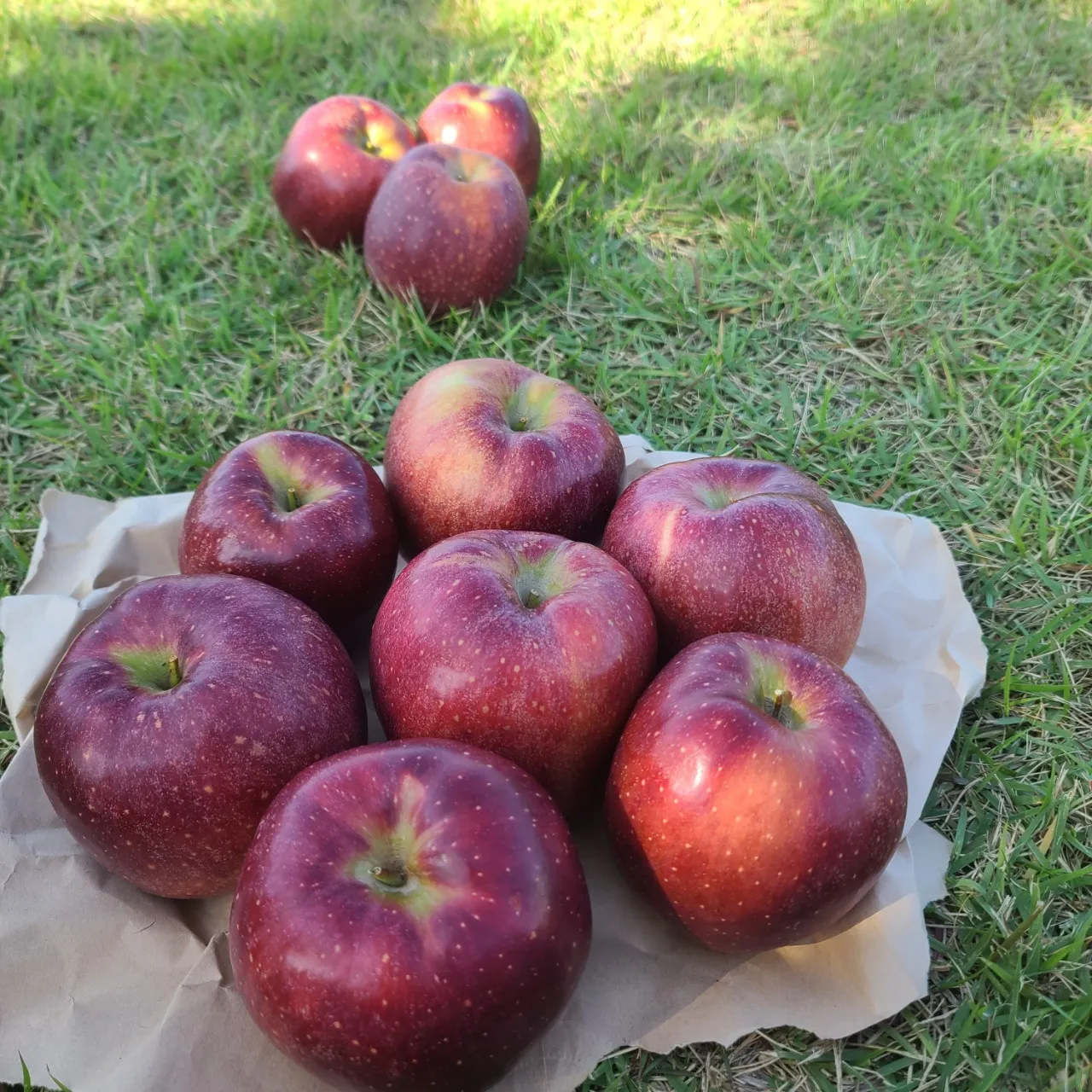 빨간색이 아니라 검붉은색이어야 해요. 색이 진할수록 더 맛있게 익은 거거든요. 일반 사과처럼 새빨간 색을 기대하시면 안 돼요.