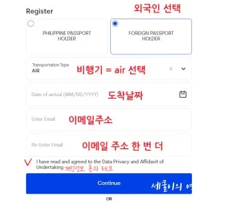 필리핀 이트래블 eTravel 단계별 등록 방법