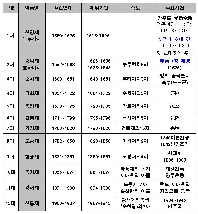 명나라 청나라 황제 계보 - 중국 역사 마지막 두 왕조 완벽 정리