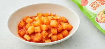 떡볶이 먹을 때 깍두기를 곁들이면 달콤한 떡볶이 맛에 변화를 줄 수 있어요.