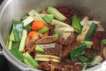 반대로 고기가 너무 물러서 형태가 무너졌다면 다음번엔 압력솥 시간을 5분 줄이세요.